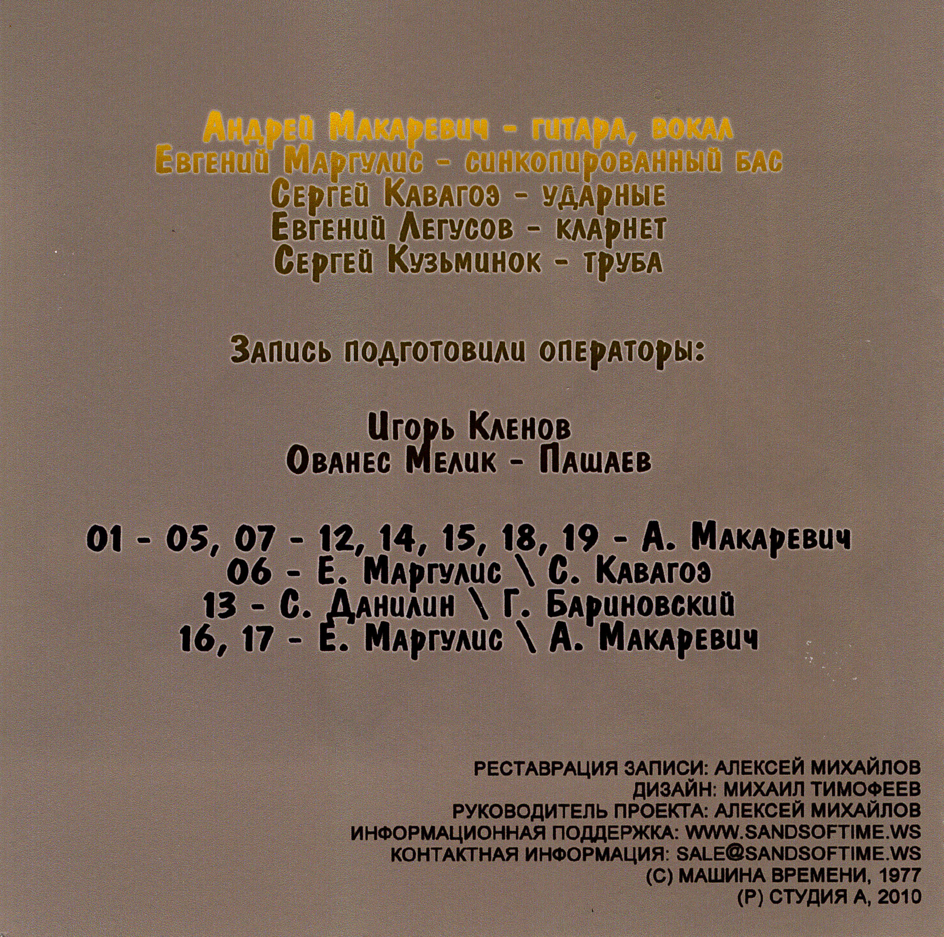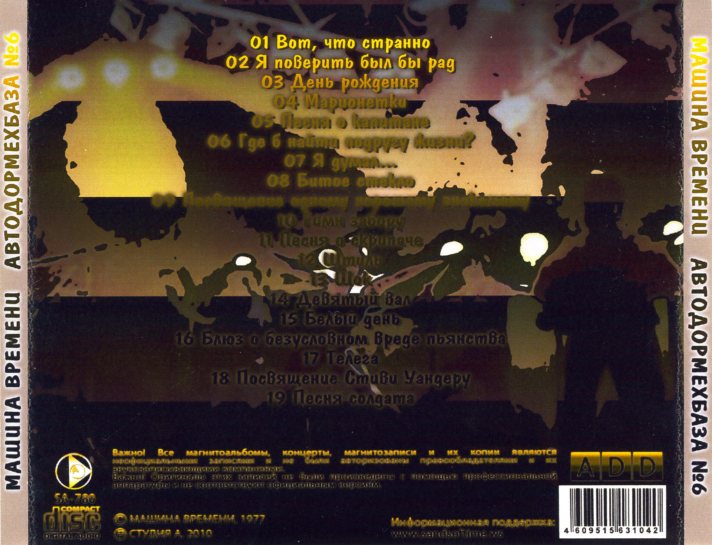 Index of /Rock/Rus/Машина Времени - Официальная дискография (1974 - 2016)/04. Бутлеги, издававшиеся на CD/1977 - Запись на Автодормехбазе №6 [2010, Студия А SA-780]/Scans